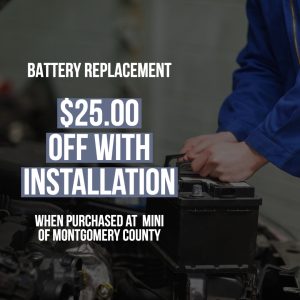 b. Discounted Offer: MINI of Montgomery County values customer satisfaction and offers a $25.00 discount on battery replacement when combined with installation. This promotion allows you to enhance your vehicle’s performance at a competitive price.