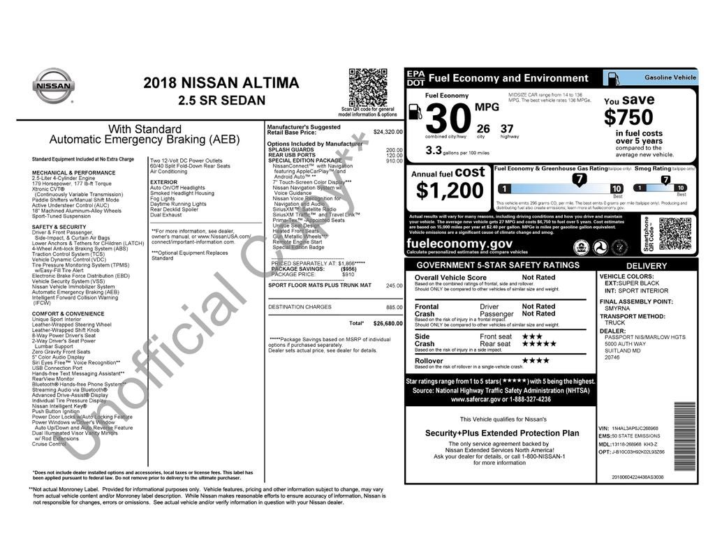 Call 301-423-8400 to confirm availability and to schedule a hassle free test drive! We are located at: 5000 Auth Way, Marlow Heights, MD 20746 or see more dealer details at www.passportnissanmd.com. Introducing our PASSPORT ONE PRICE program where qualified pre-owned vehicles receive a 3-Month/3000-Mile Limited Warranty, a 3-Day/300-mile money back guarantee, State Inspection, and car washes for life! See dealer for additional details. *Limited Warranty does not apply to vehicles sold “As-Is” or “Implied Warranty. Some vehicle images may have been digitally enhanced, retouched, or modified using AI-assisted technology for marketing purposes. Colors, features, options, and overall appearance may vary from the actual vehicle. Please contact the dealership for specific vehicle details.