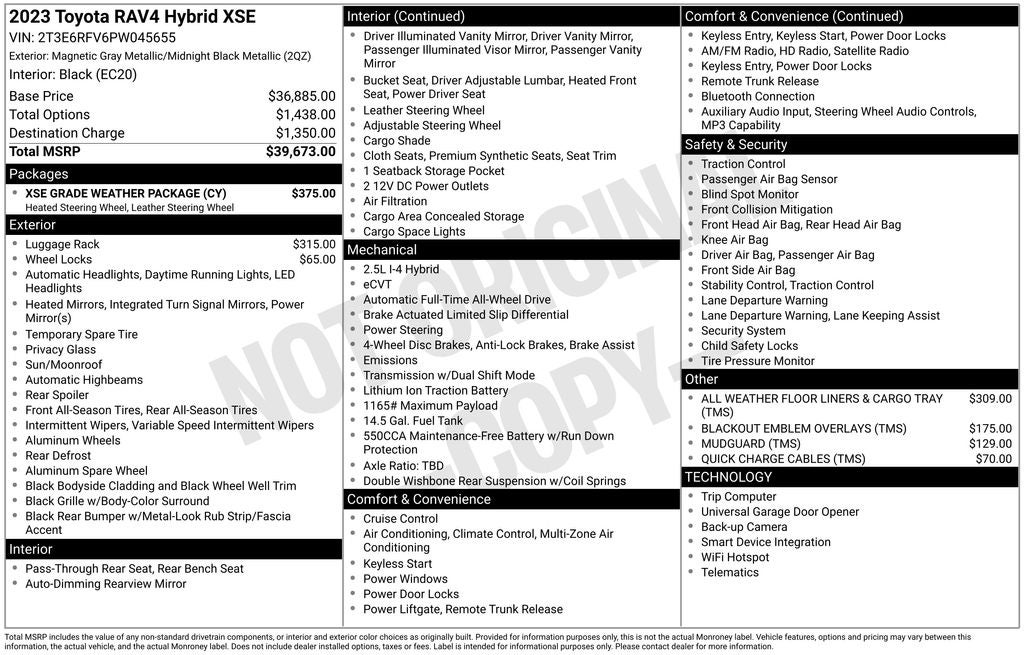 Combining exceptional fuel efficiency, advanced safety technologies, and a wealth of premium features, this 2023 Toyota RAV4 Hybrid XSE is a true standout in the compact SUV segment. Experience the difference for yourself by scheduling a test drive today. We're confident you'll be impressed by this exceptional vehicle.
