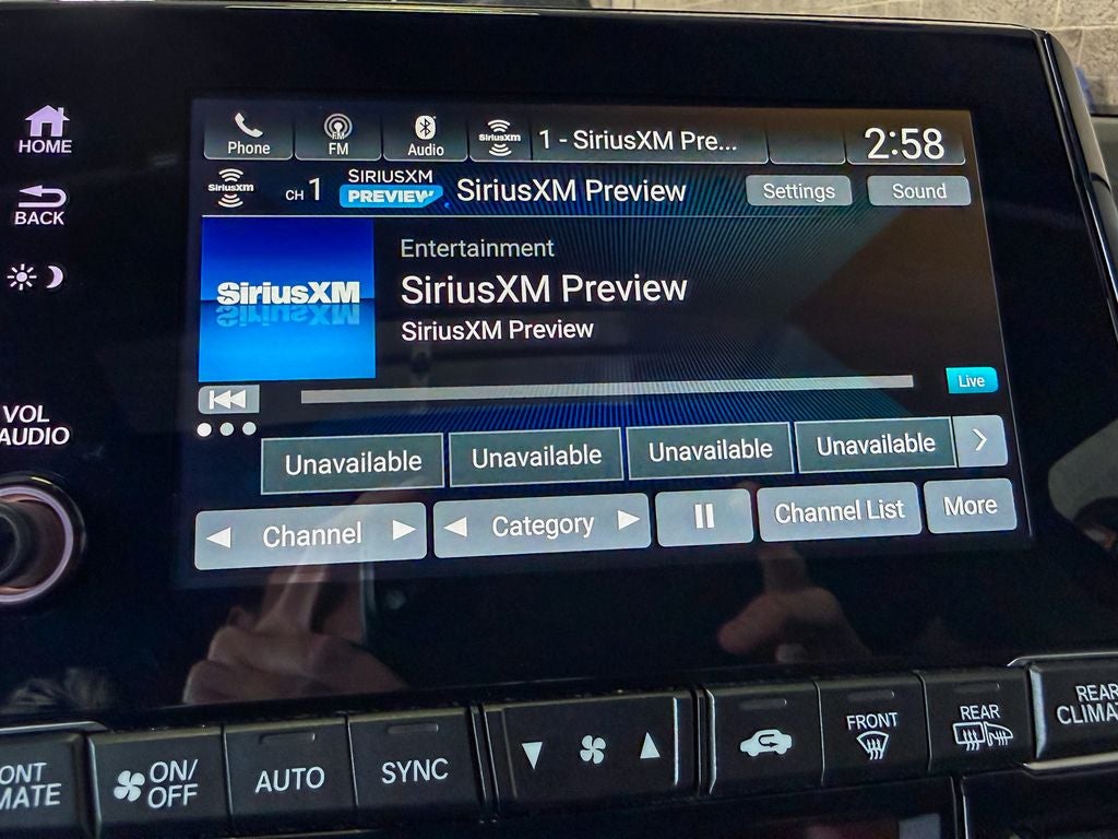 - Radio: 160-Watt AM/FM/HD/SiriusXM Audio System -inc: 7 speakers including subwoofer, 8" color touchscreen display, Bluetooth® HandsFreeLink, Bluetooth® streaming audio, MP3/auxiliary input jack, Radio Data System (RDS), Speed-Sensitive Volume Compensation (SVC), CabinControl remote compatibility, HondaLink, Apple CarPlay compatibility, Android Auto compatibility, SMS text message function, 3 2.5-amp USB charging ports, 2.5-amp USB smartphone/audio interface, illuminated steering wheel-mounted audio controls and black fin-type roof-mounted antenna, All SiriusXM services require a subscription, sold separately by SiriusXM after the trial period, If you decide to continue service, the plan you choose will automatically renew at the then-current rates, Fees and taxes apply, See the SiriusXM Customer Agreement & Privacy Policy at www.siriusxm.com for full terms and how to cancel, which includes calling 1-866-635-2349, Available in the 48 contiguous U.S, and D.C, Some services and features are subject to device capabilities and location restrictions, All fees, content and features are subject to change, SiriusXM, Pandora and all related logos are trademarks of Sirius XM Radio Inc, and its respective subsidiaries