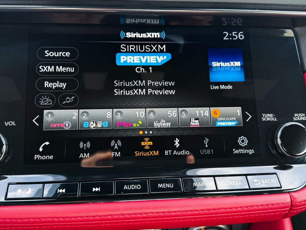 - Radio: Bose Audio System w/8 Speakers -inc: 9" touchscreen w/navigation, active noise cancellation (ANC), active sount enhancement (ASE), Bluetooth® hands-free phone system, streaming audio via Bluetooth®, SiriusXM Radio, wireless Apple CarPlay, Android Auto, hands-free text messaging assistant, voice recognition, Siri Eyes Free, 1 USB type-A, 1 USB type-C, Alexa connectivity and NissanConnect services w/Wi-Fi hotspot